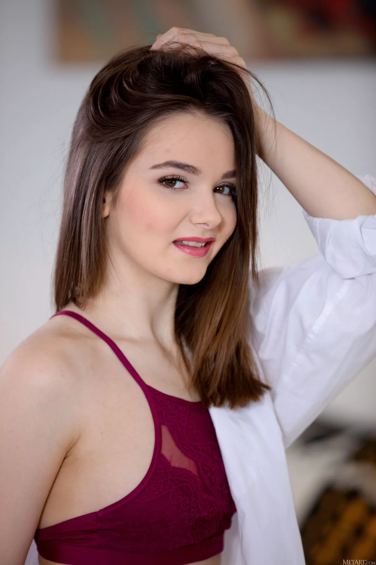 Улыбающаяся девушка в домашнем интерьере — Purr Simona